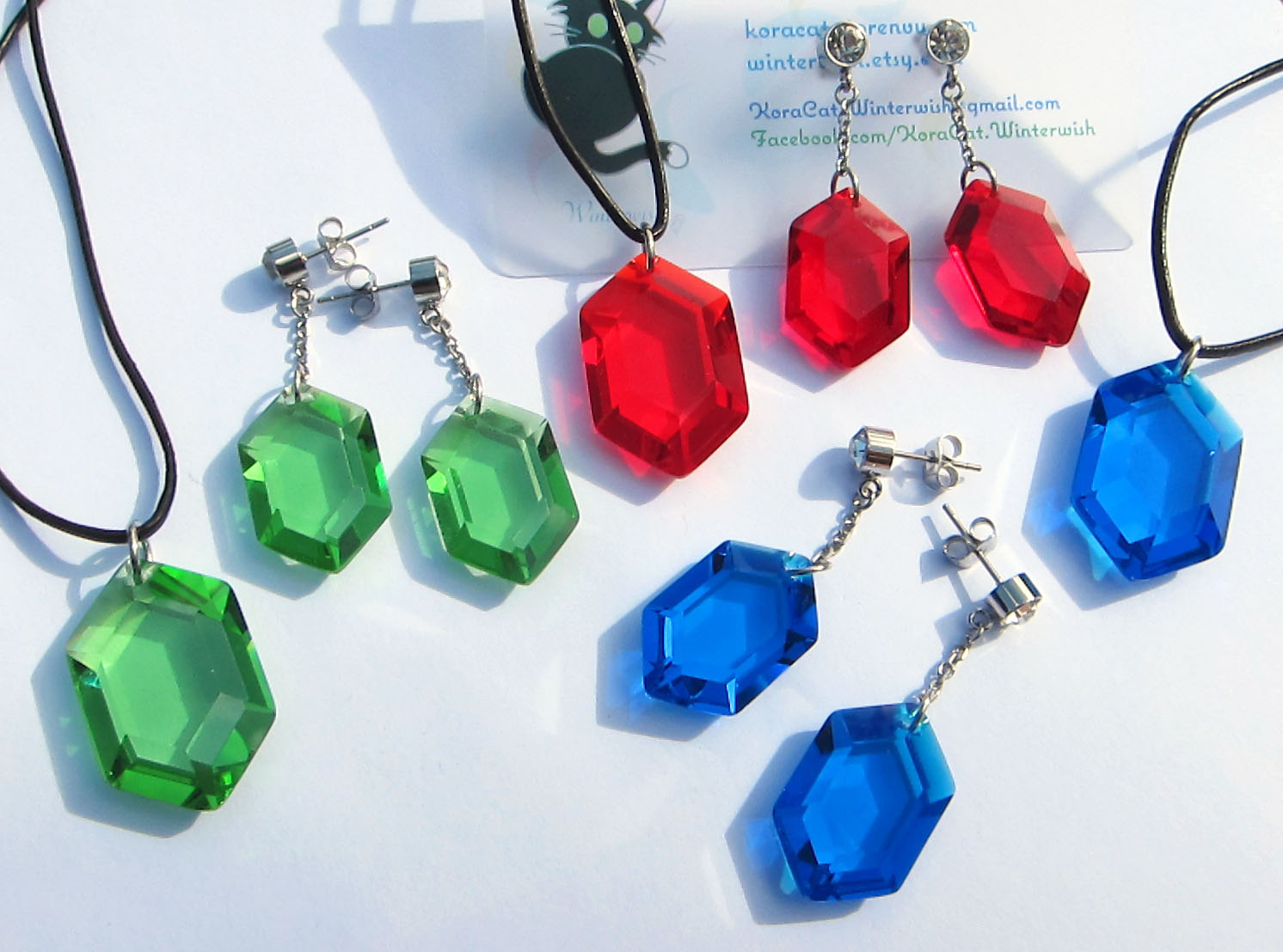 Our Rupees are cut to a realistic Hyrule currency size from colored transparent glass.