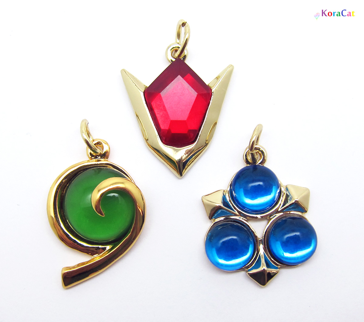 Choose from the following Spiritual Stones: Kokiri Emerald, Zoron Ruby, Zora Sapphire. Two options for metal material are available, brass or stainless steel.