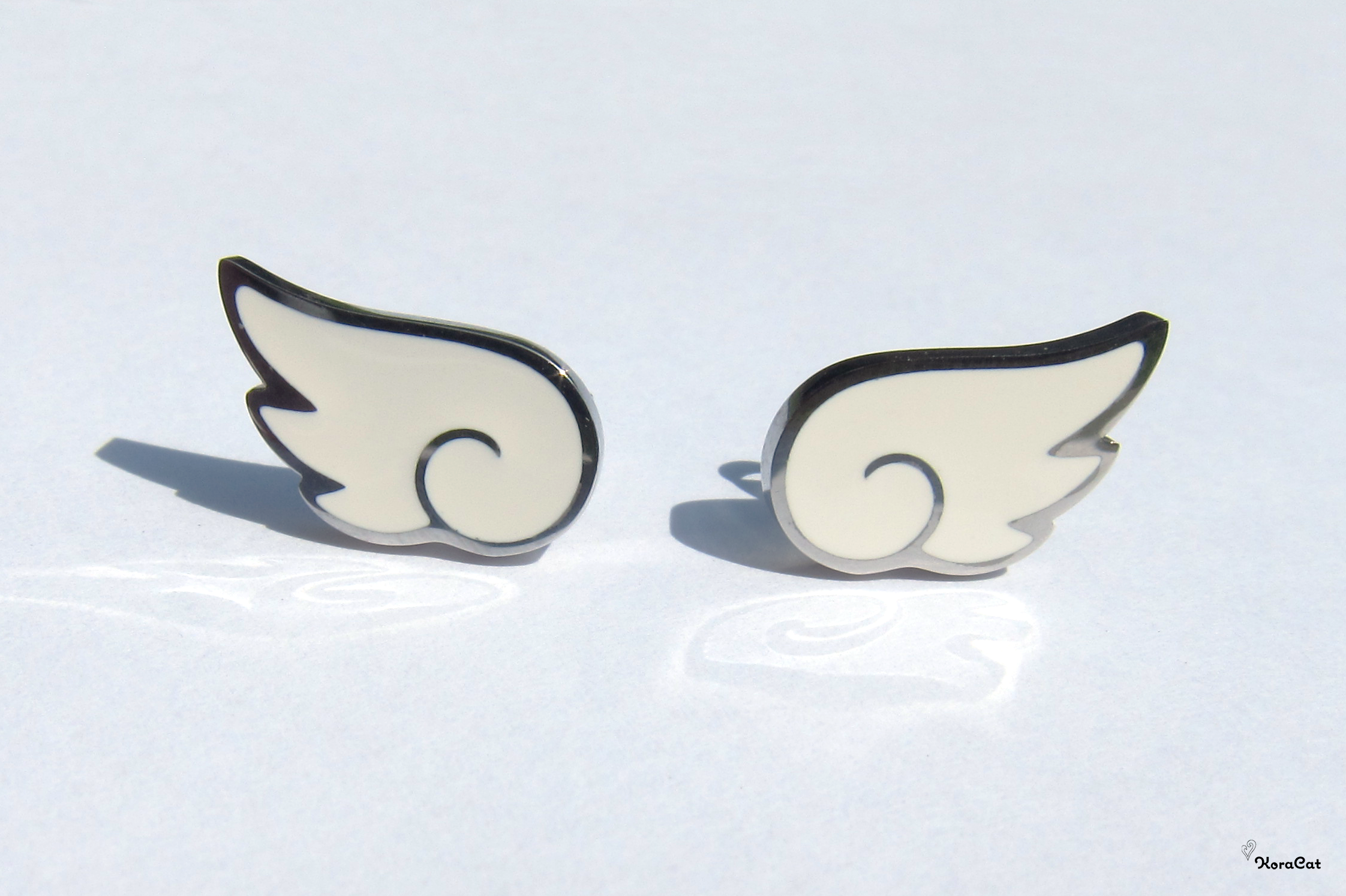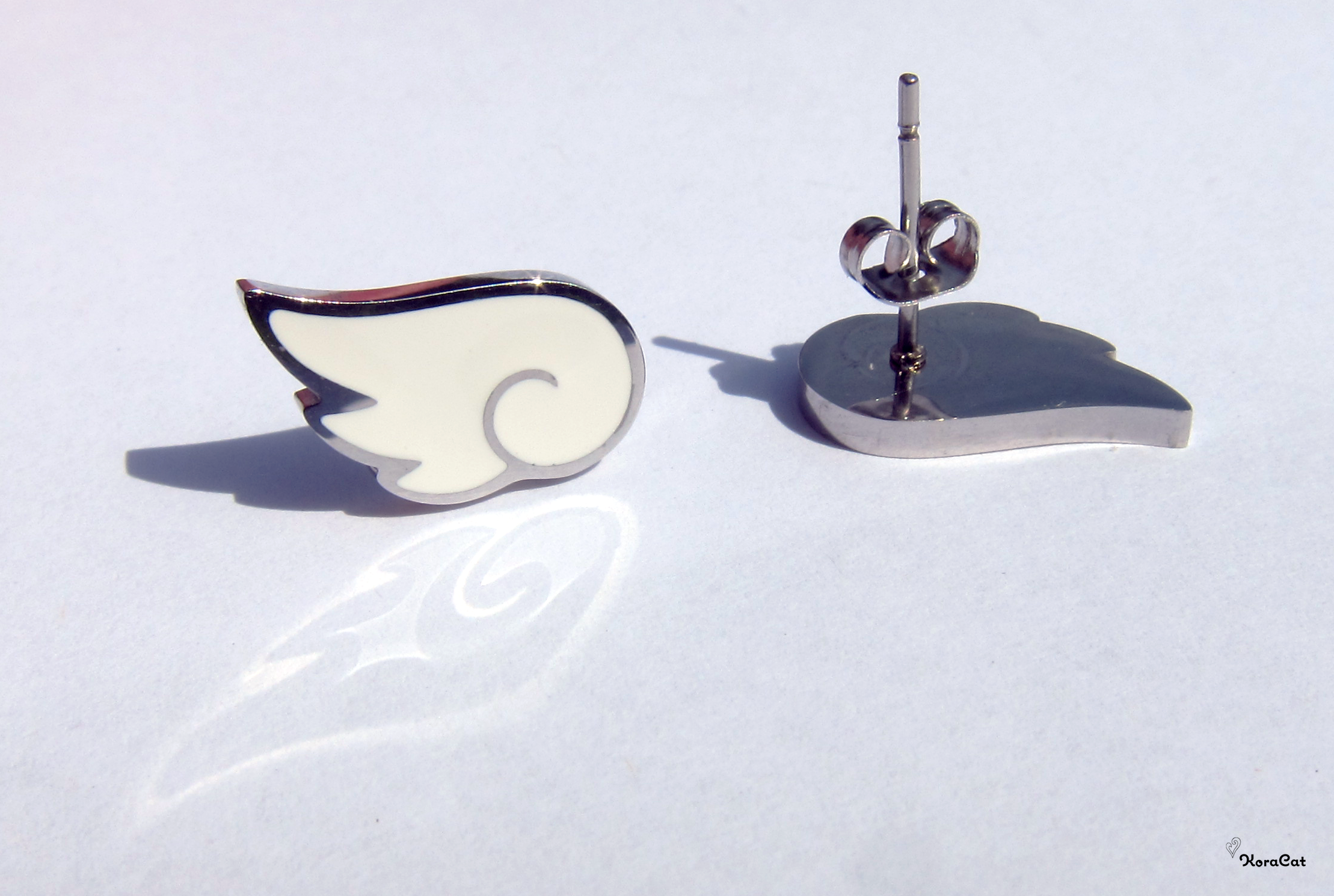 These are a pair of unique wing earrings crafted with solid stainless steel and inlaid white enamel.